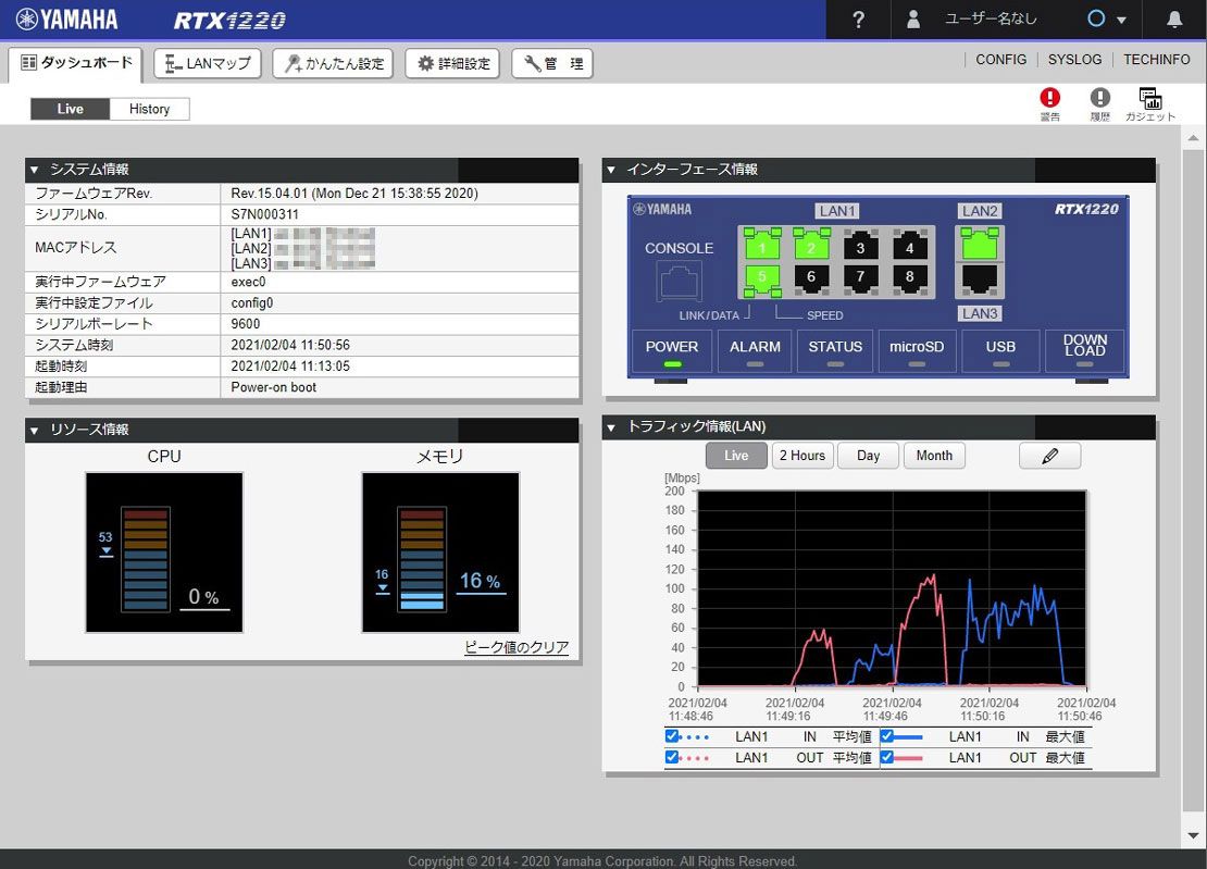 『RTX1220』は、クラウド型管理サービス「YNO」に対応し、自宅や出張先などオフィス以外のテレワーク環境からでも簡単に機器の監視・管理をすることができます。また、インターネット回線に機器を接続して電源を入れるだけで設定が完了する「ゼロコンフィグ」により、ネットワークへの本機の追加や交換も簡単に行えます。