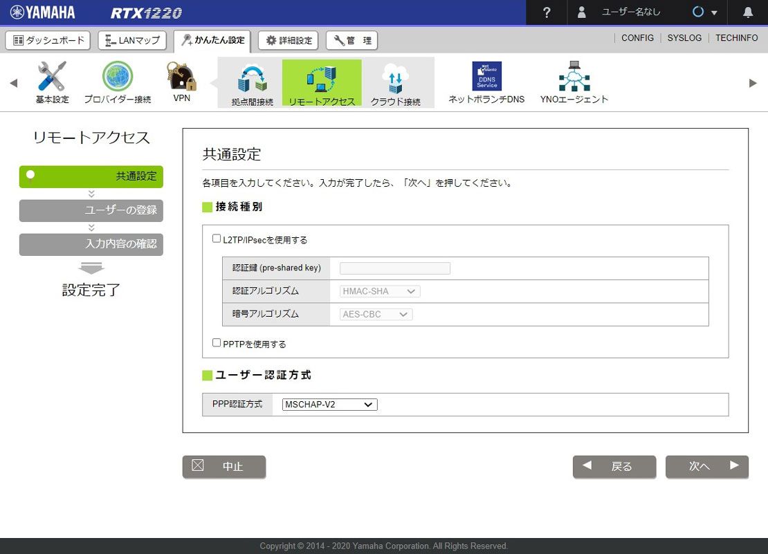 『RTX1220』は、LAN間接続VPNに加えてリモートアクセスVPNにも対応しているため、複数の拠点間通信を行いつつ、テレワーク等によるリモートアクセスも実現します。今後、テレワークへの移行がさらに進みリモートアクセスVPNの需要が増加した場合でも、合計100対地までのVPN接続を安定して収容することができるため、中小規模ネットワークの構築に最適です。また、従来モデル「RTX1210」の洗練されたGUIを継承しており、複雑なネットワーク構成を直感的に把握し、容易に構築することが可能です。
